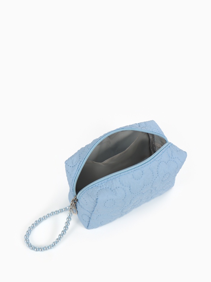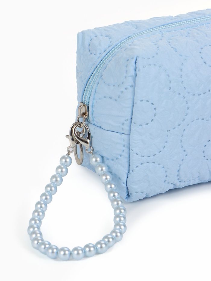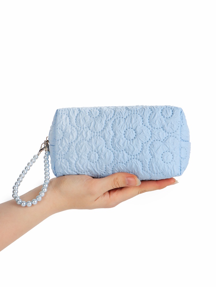 Элегантная голубая косметичка с ручкой из бусин — идеальный спутник каждой женщины, ценящей практичность и стиль. Этот аксессуар сочетает в себе компактные размеры с достаточной емкостью, позволяя аккуратно разместить ежедневные косметические средства. Полиэстеровая ткань обеспечивает долговечность и защиту от влаги.