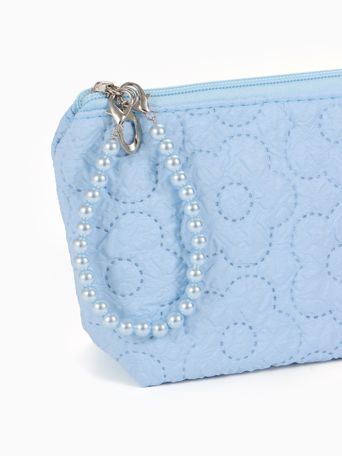 Эта небесно-голубая косметичка с узором станет вашим надежным спутником в мире красоты. Сочетая стиль и практичность, это небольшое, но ёмкое дополнение к вашей современной жизни. Она органично впишется в ваш повседневный ритм и станет яркой деталью, привлекающей внимание.