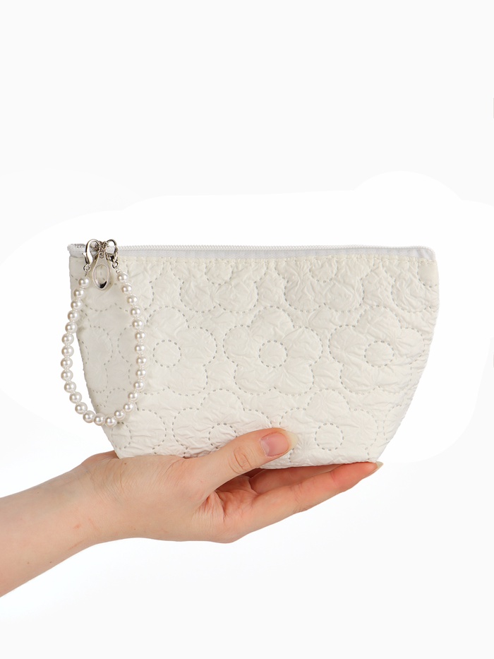 Элегантная косметичка с цветочным узором станет идеальным спутником для современной женщины, ценящей стиль и функциональность. Благодаря своей компактности и универсальности, она легко поместится в любой сумке. Модный молочный оттенок сочетается практически с любым образом, создавая атмосферу изысканности и утончённости.
