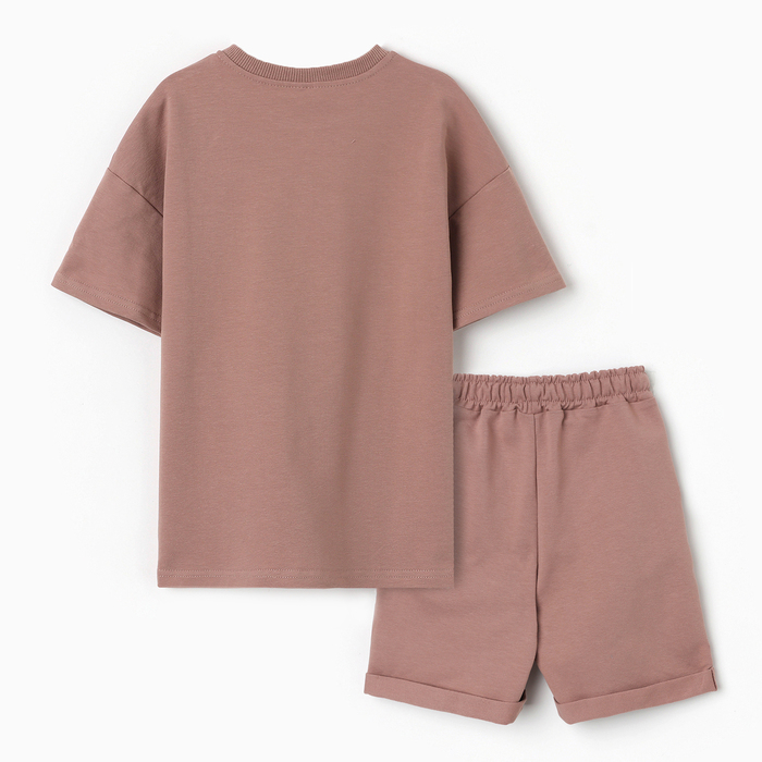 Костюм детский (футболка, шорты), коричневый, рост 98 см