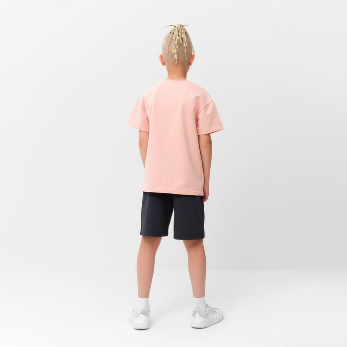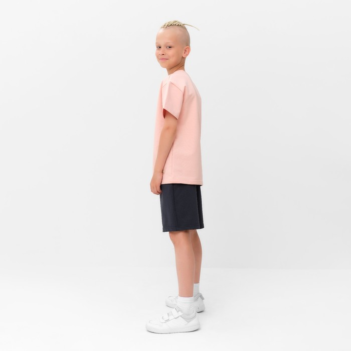 Костюм детский (футболка, шорты) MINAKU, бежевый/графит, рост 146 см