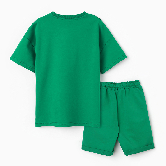 Костюм детский (футболка, шорты), зелёный, рост 98 см