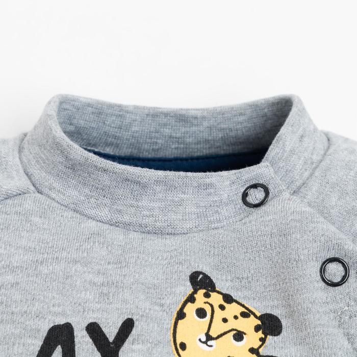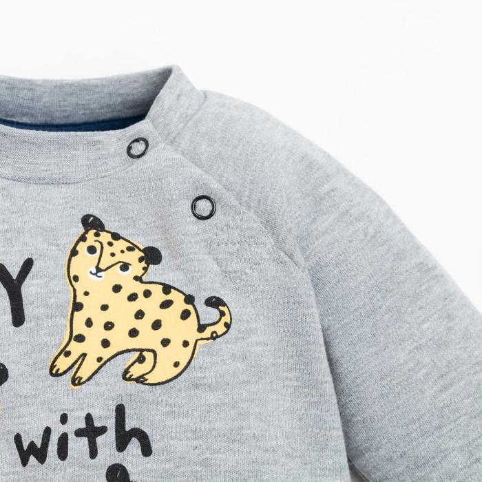 Костюм для мальчиика (джемпер, брюки) «Крошка Я. Леопарды», рост 86-92 см, серый, синий