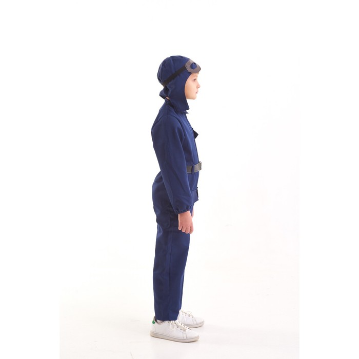 Костюм военного «Лётчик», комбинезон, ремень, шлем, очки, 3-5 лет, рост 104-116 см превратит ребёнка в отважного пилота. Такой образ пригодится для участия юного защитника в театральных постановках, тематических мероприятиях по случаю Дня Победы, 23 Февраля и других военных праздников.