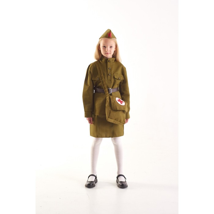 Костюм военного "Санитарка" для девочки, 8-10 лет, рост 140-152 см превратит юную леди в отважную героиню, спасающую жизни на поле боя. Комплект стилизован под форму времён Второй мировой, чтобы максимально передать атмосферу боевых дней.