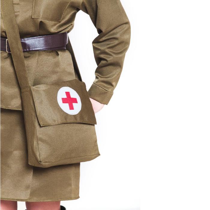 Костюм военного «Санитарочка»: пилотка, гимнастёрка, ремень, юбка, сумка, р. 40-42 превратит хрупкую девушку в отважную боевую подругу, спасающую жизни солдат! Дизайн гимнастёрки, перетянутой на талии ремнём, максимально приближен к форме далёких 40-х, чтобы вы могли с головой окунуться в атмосферу боевых дней.