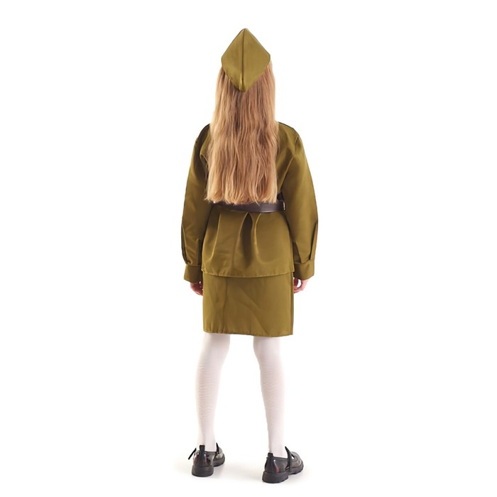 Костюм военного «Солдаточка», гимнастёрка, ремень, пилотка, юбка, 5-7 лет, рост 122-134 см превратит юную леди в отважную военнослужащую и поможет воспитать у девочки патриотические чувства! Дизайн комплекта максимально приближен к солдатской форме времён Второй мировой.