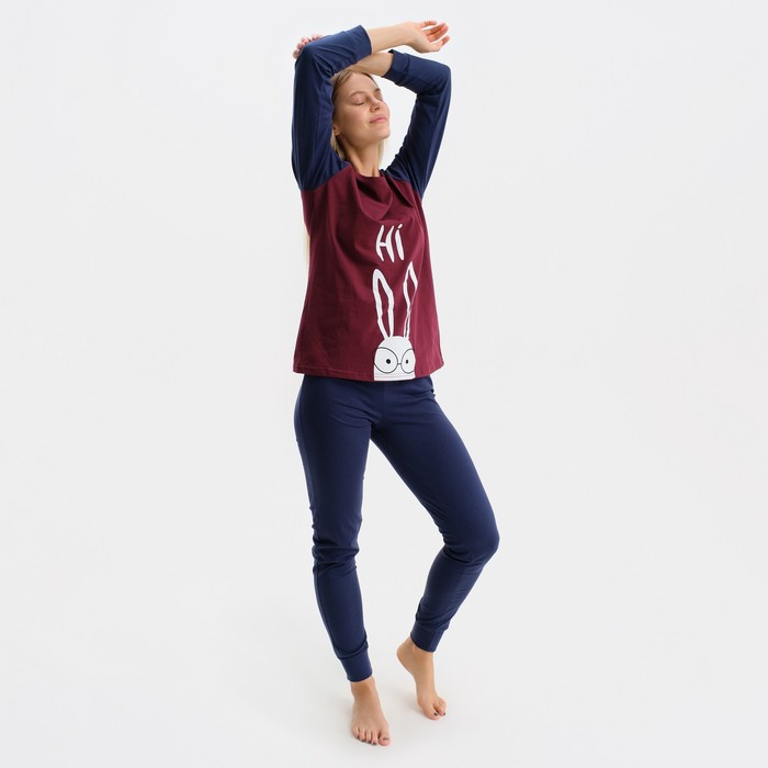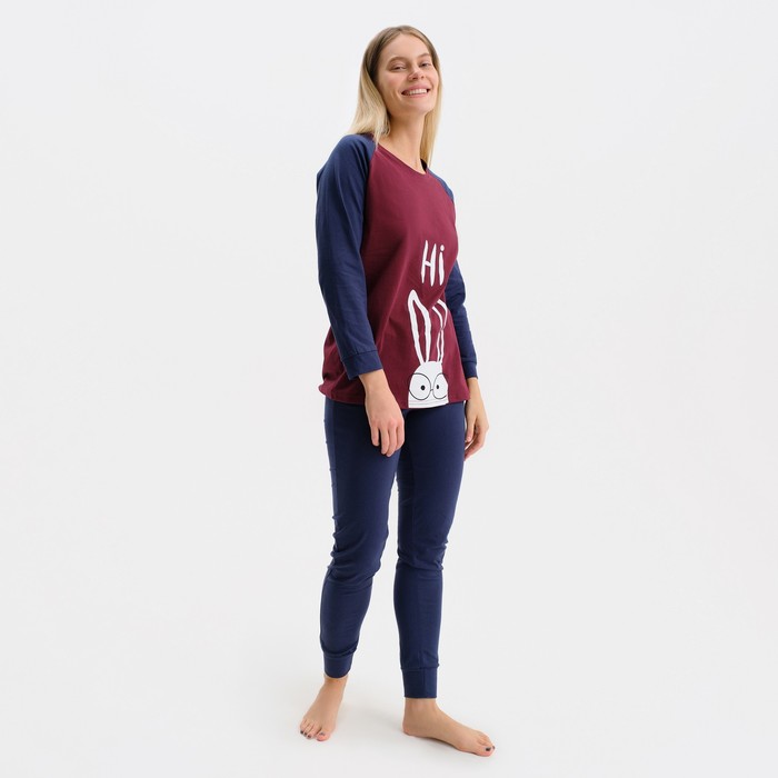 Костюм женский (брюки/джемпер), цвет индиго/бордо, размер 50