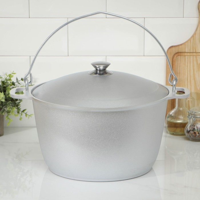 Котёл из литого алюминия пригодится для варки и тушения блюд из мяса, рыбы и овощей. Благодаря большому объёму изделия еды хватит на всех! Такой инструмент незаменим во время похода: благодаря удобной ручке котёл можно легко подвесить над костром.