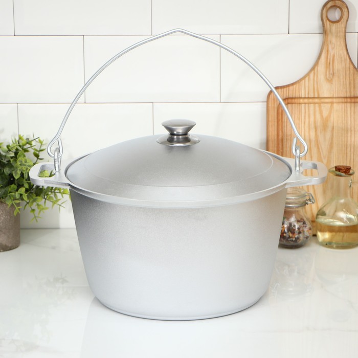 Котёл из литого алюминия пригодится для варки и тушения блюд из мяса, рыбы и овощей. Благодаря большому объёму изделия еды хватит на всех! Такой инструмент незаменим во время похода: благодаря удобной ручке котёл можно легко подвесить над костром.