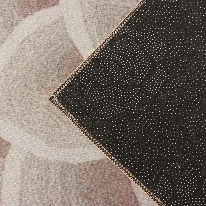 Коврик выполнен из устойчивого к износу полиэстера с прочной основой из ПВХ, что обеспечивает высокую долговечность и легкость в уборке. Его градиентный цвет и цветочно-растительный рисунок добавят изящества и свежести в атмосферу вашего дома, а также идеально подойдут для подарка ко Дню 8 Марта.