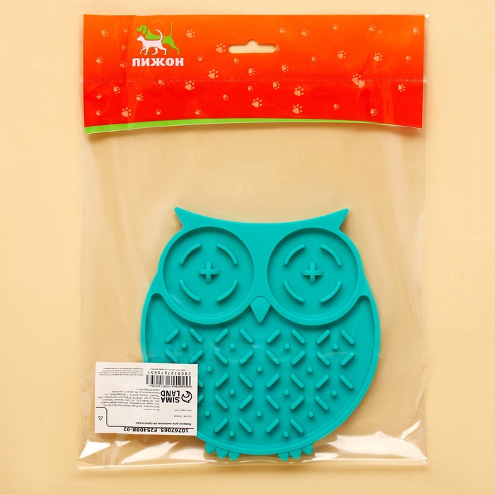 Яркий цвет и форма: Зеленый цвет и форма в виде совы делает коврик визуально привлекательным для домашних животных, что побуждает их к игре и исследованию.