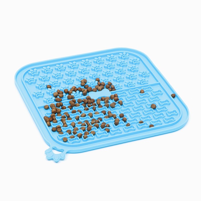 Он обеспечивает комфортное и медленное поедание пищи, а также стимулирует инстинкты лизания у домашних животных. Интерактивный коврик снижает стресс и риск различных заболеваний пищеварительной системы, порадует вашего питомца, активизирует его интеллект, а также предоставит ему забавное времяпровождение при поедании лакомств.