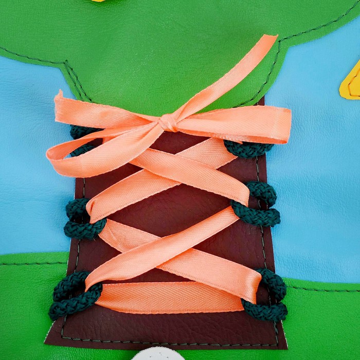 В процессе игры ребёнок научится шнуровать, завязывать банты, застёгивать пуговицы и замки.