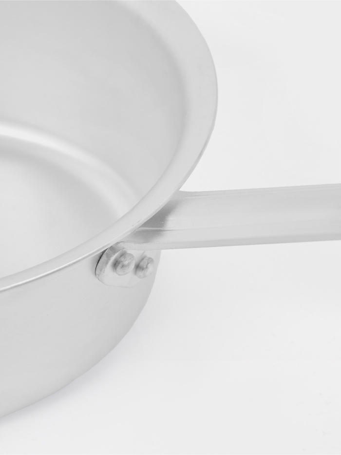 Алюминиевый ковш объёмом 1,2 л — простая и надёжная посуда для повседневных задач на кухне. Подходит для подогрева молока, варки яиц, приготовления небольших порций супа, соуса или каши. Благодаря компактным размерам и металлической ручке он удобен в использовании и легко размещается даже на небольшой плите.