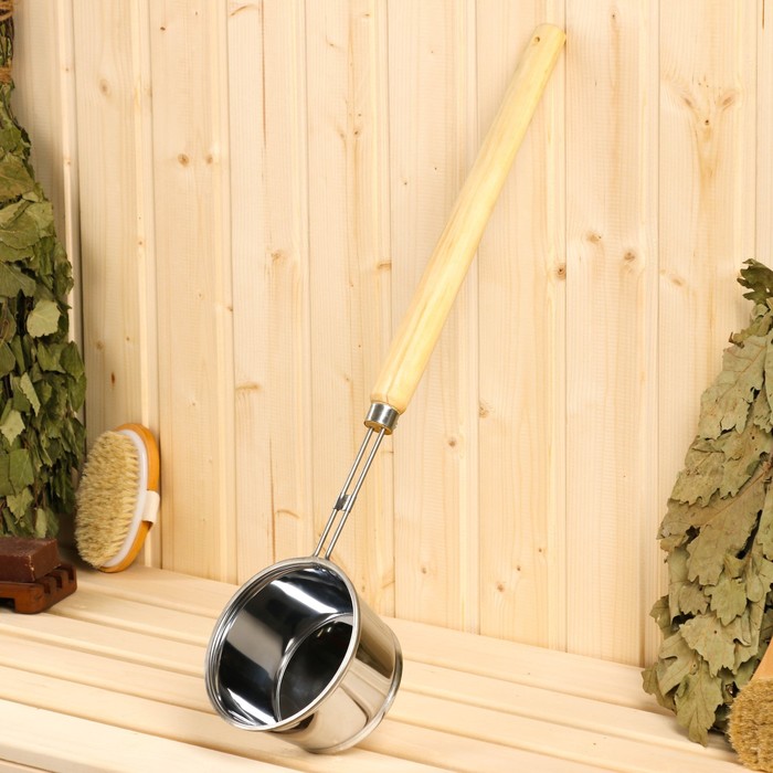 Ковш предназначен для комфортного проведения гигиенических процедур. Благодаря прочному металлическому корпусу изделие прослужит долгие годы, а удобная деревянная ручка убережет от ожогов. Ковшик удобно использовать в бане, сауне и ванной комнате.