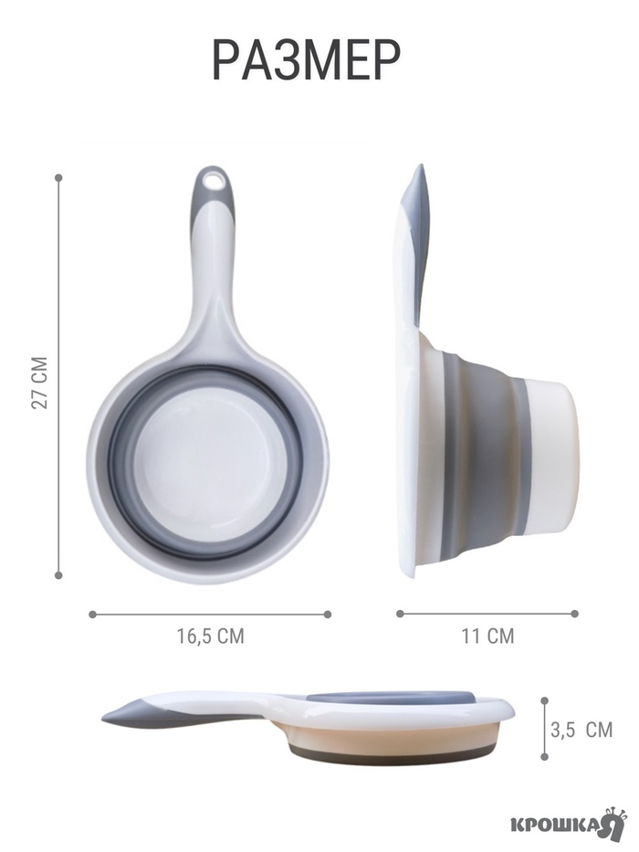 Ковшик для купания детский, складной, 1 л, цв. белый/серый
