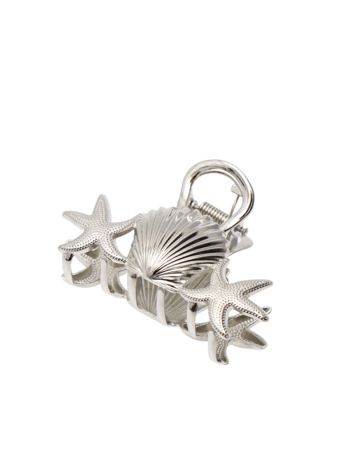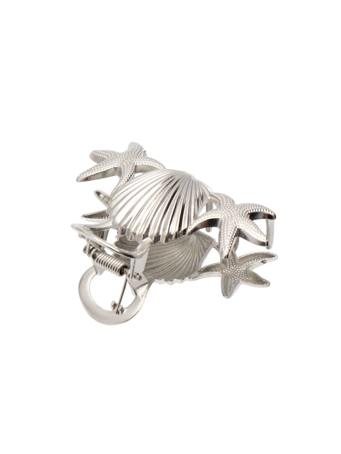 Краб для волос "Лейла море" морские звезды ракушка, 7 см, серебро