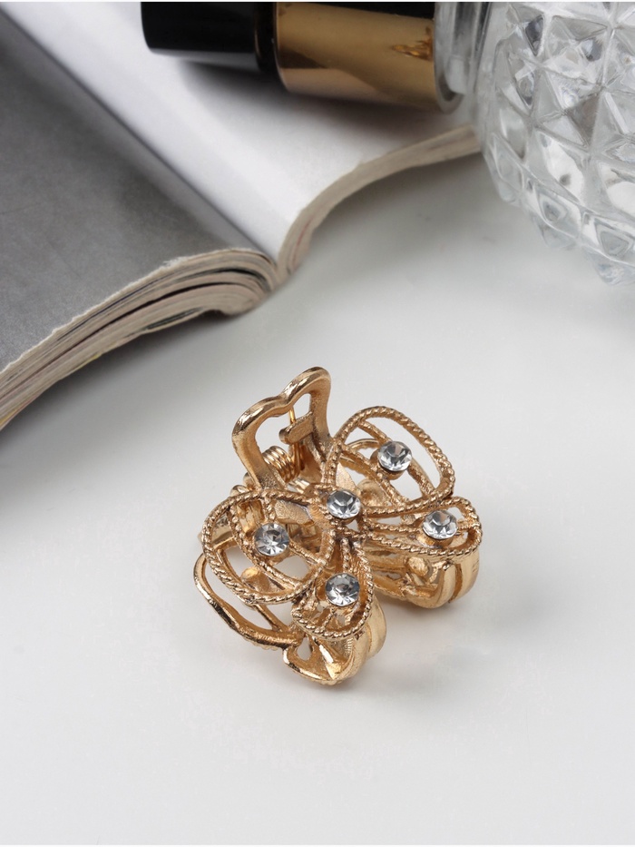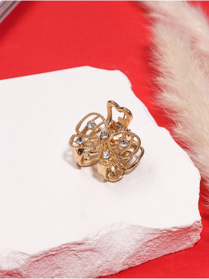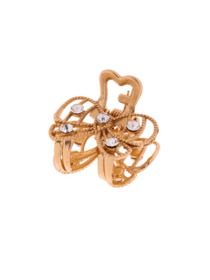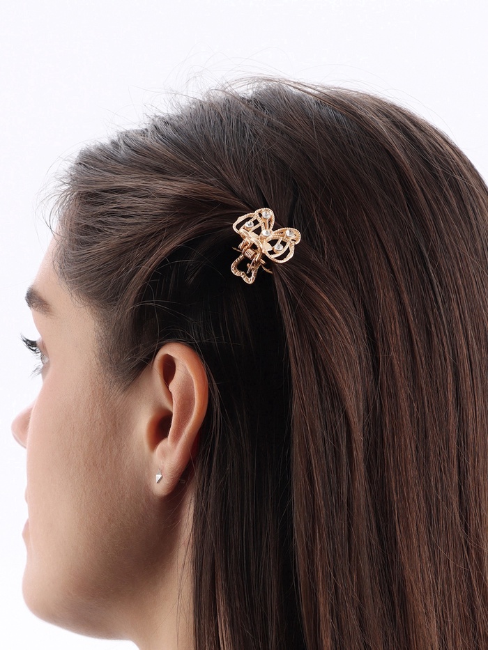 Создай уникальный образ! Золотой крабик для волос в виде бантика со стразами – изысканный аксессуар, который добавит блеска и элегантности вашему стилю. Этот миниатюрный металлический элемент станет незаменимым помощником в создании причёсок, привлекая внимание к блеску и деталям.