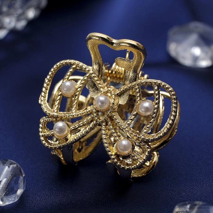 Элегантность в каждой детали! Заколка-крабик «Бантик» с жемчугом — это стильный и надежный аксессуар для создания аккуратных причесок. Миниатюрный краб из металла с золотистым покрытием и вставкой из искусственного жемчуга станет изящным дополнением вашего образа.