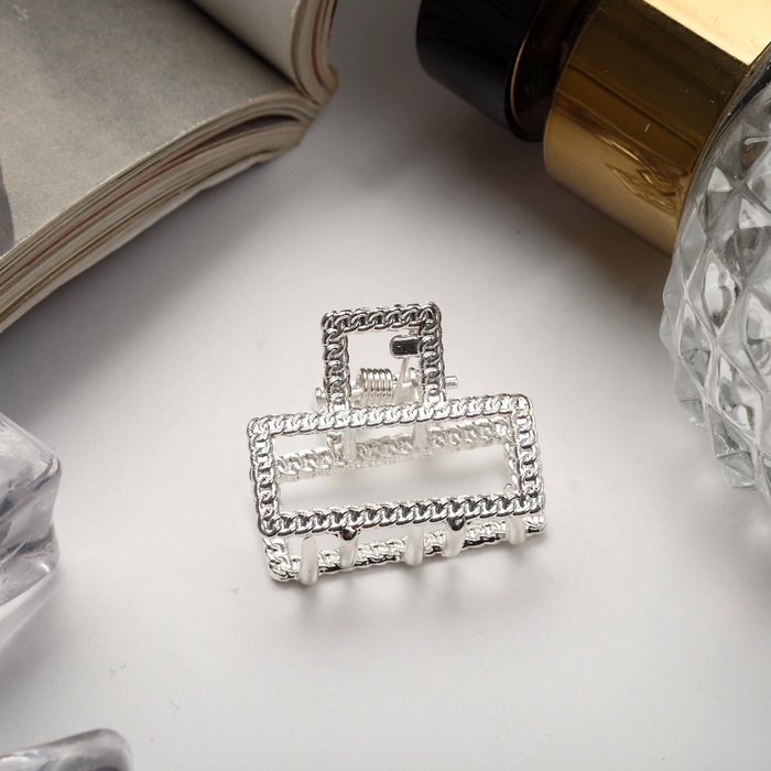 Крабик для волос «Эмма», прямоугольник, 2.5×2 см, серебро