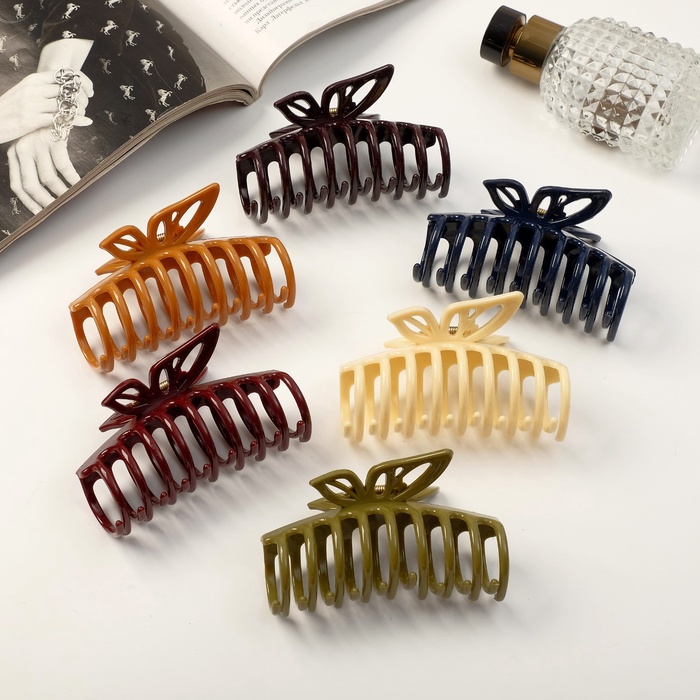 Стильный аксессуар для мгновенного преображения прически! Зажим для волос «Бабочка» — это элегантное решение для тех, кто ценит в укладке легкость и эффектный внешний вид. Пластиковая застежка-краб с глянцевым покрытием надежно фиксирует пряди, оставляя ощущение комфорта.