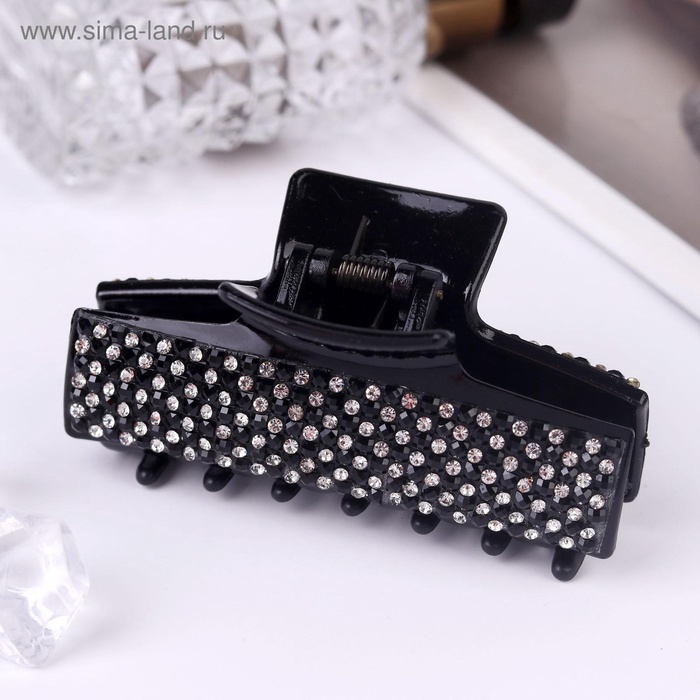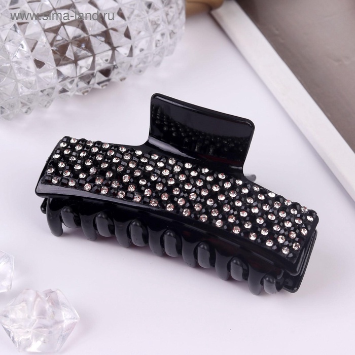 Крабик для волос «Торжество», стразы, 8 см, чёрный