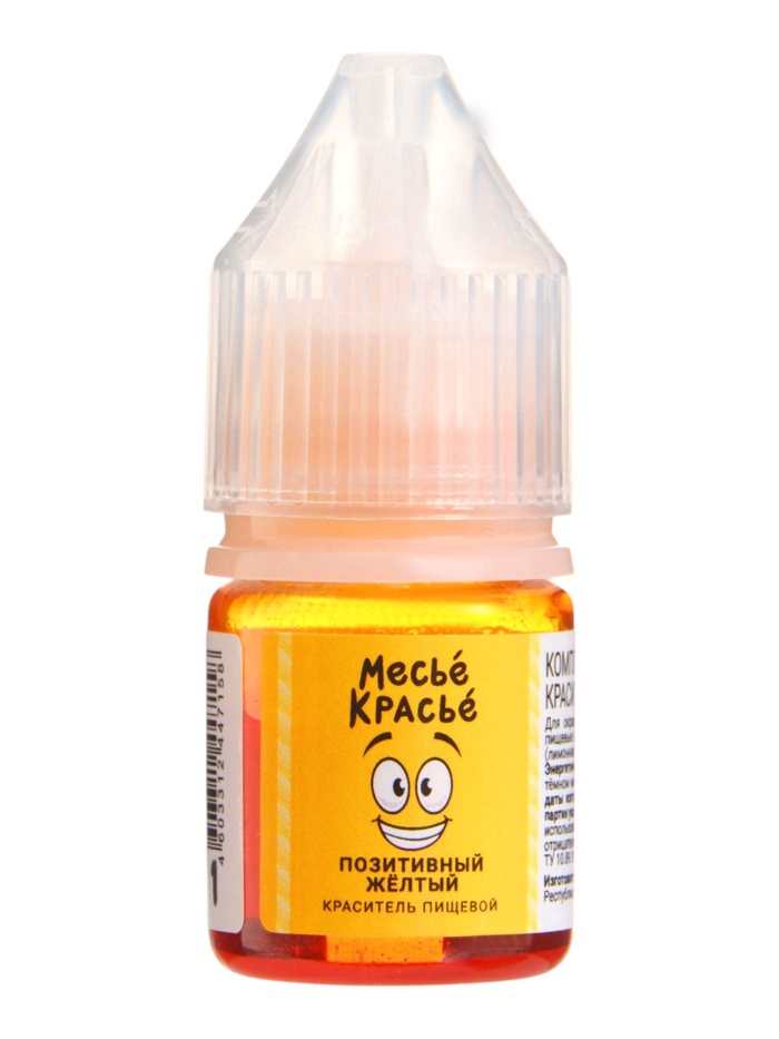 Жидкий водорастворимый краситель «Позитивный жёлтый» наполнит яйца и выпечку тёплым весенним оттенком. Состав создан для яркого декора куличей, творожной пасхи и других угощений без лишних усилий.