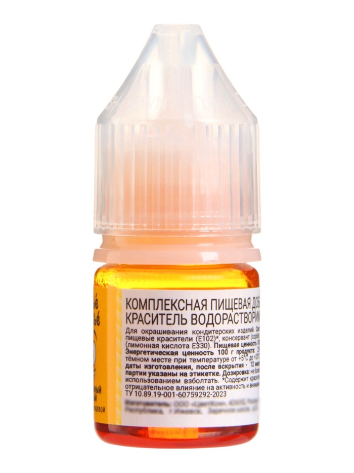 - Чистый жёлтый цвет: Краситель даёт солнечный оттенок от нежного лимонного до насыщенного золотистого. Регулируйте интенсивность парой капель, добиваясь нужного тона на скорлупе или в глазури.