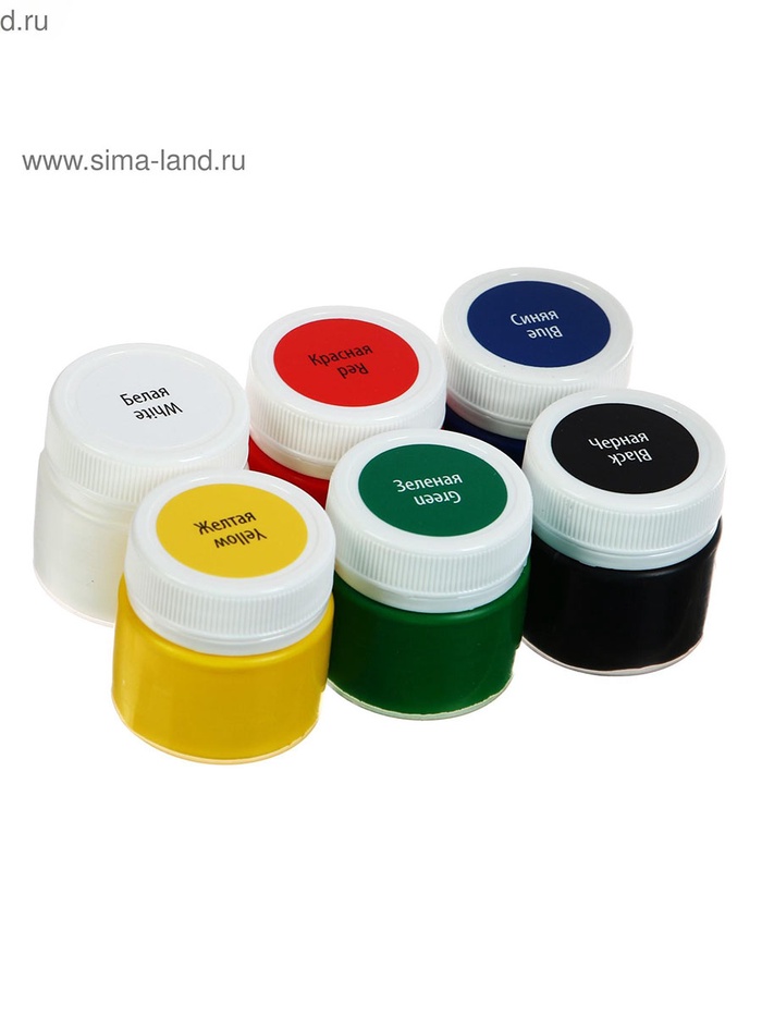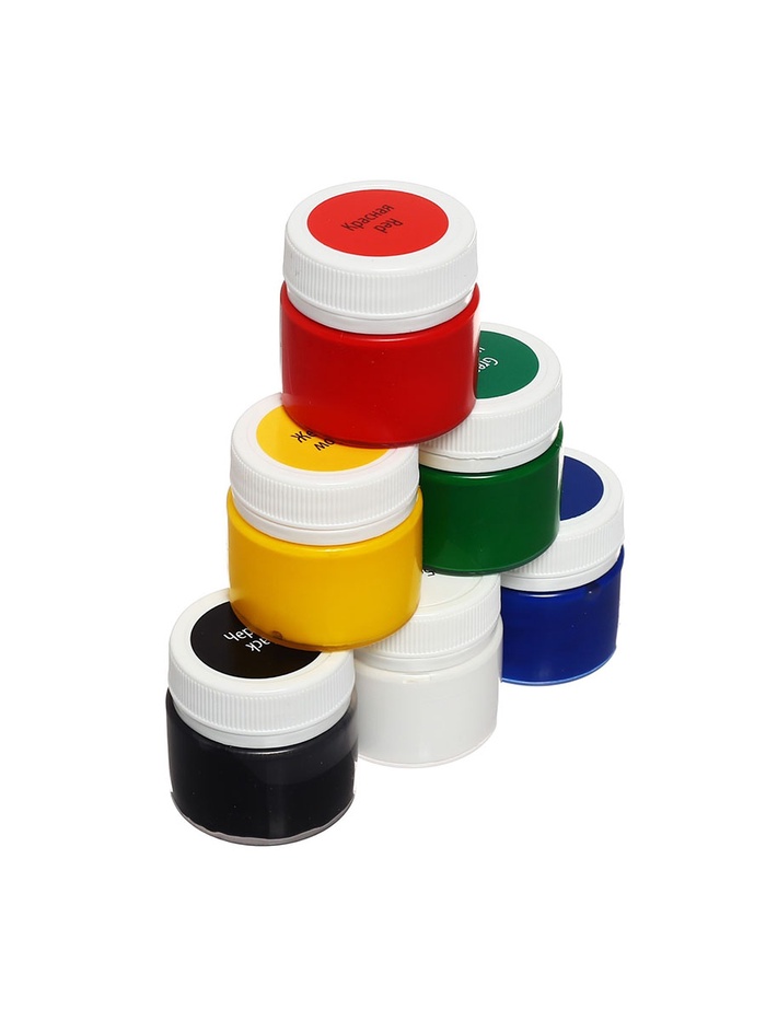 Состав набора: белая, красная, синяя, желтая, зеленая, черная.
