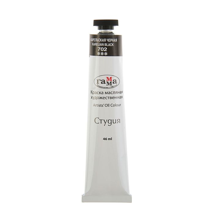 Штучная масляная краска серии "Студия" цвета карельская чёрная не уступает тонкотёртым масляным краскам по степени перетира, пастозности и светостойкости. Состав красок экологически безопасен благодаря имитациям кадмиево-кобальтовой группы пигментов. Продукт идеально подходит для начинающих художников и студентов художественных училищ. Объём тубы — 46 мл.