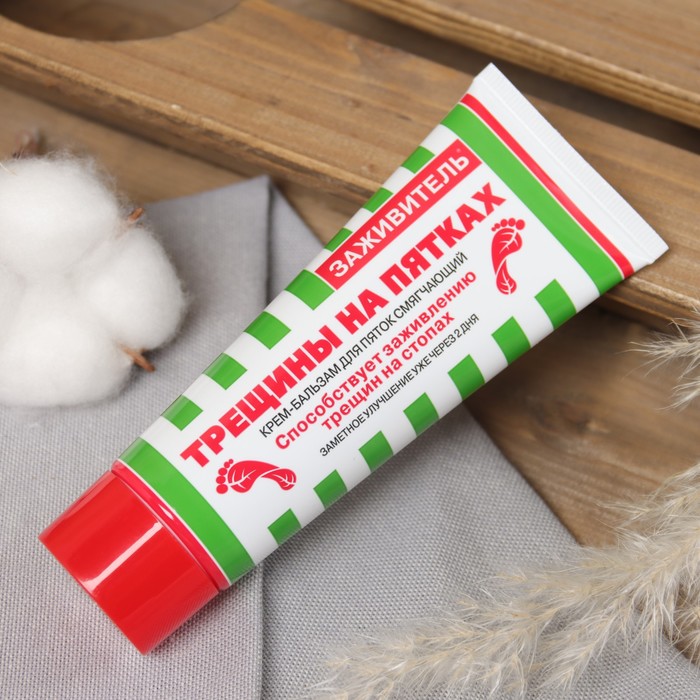 Крем-бальзам для пяток ЗАЖИВИТЕЛЬ смягчающий -эффективное натуральное средство на основе природных компонентов. Смягчает, увлажняет и выравнивает кожу стоп, устраняет загрубение и пересыхание кожи, натоптыши и трещины на пятках. Здоровые ухоженные пятки должны быть в любом возрасте гладкими и мягкими. Однако у большинства людей с годами кожа ступней грубеет, на ней появляются натоптыши (утолщение рогового слоя кожи - омертвление рогового слоя кожи), мозоли. На пятках нередко возникают трещины в результате механических повреждений (тесная обувь, синтетические носки и колготки, хождение босиком), а также вследствие нарушения обмена веществ, плохого кровоснабжения стоп, дефицита витаминов А и Е. Любые нарушения нормального кожного покрова на ступнях вызывают ощущение дискомфорта, боль, являются косметическим дефектом и серьёзным фактором риска возникновения грибковых заболеваний.