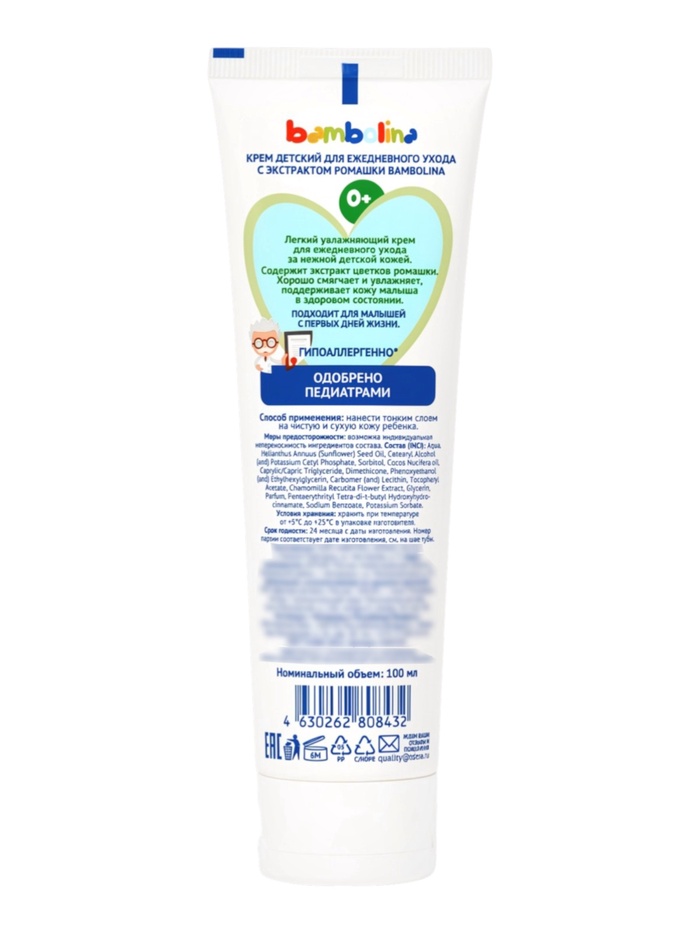 Крем Bambolina с экстрактом ромашки представляет собой доступный и универсальный вариант ухаживающего средства, который подойдёт для тех, кто ищет мягкий уход с растительным компонентом для ежедневного применения.