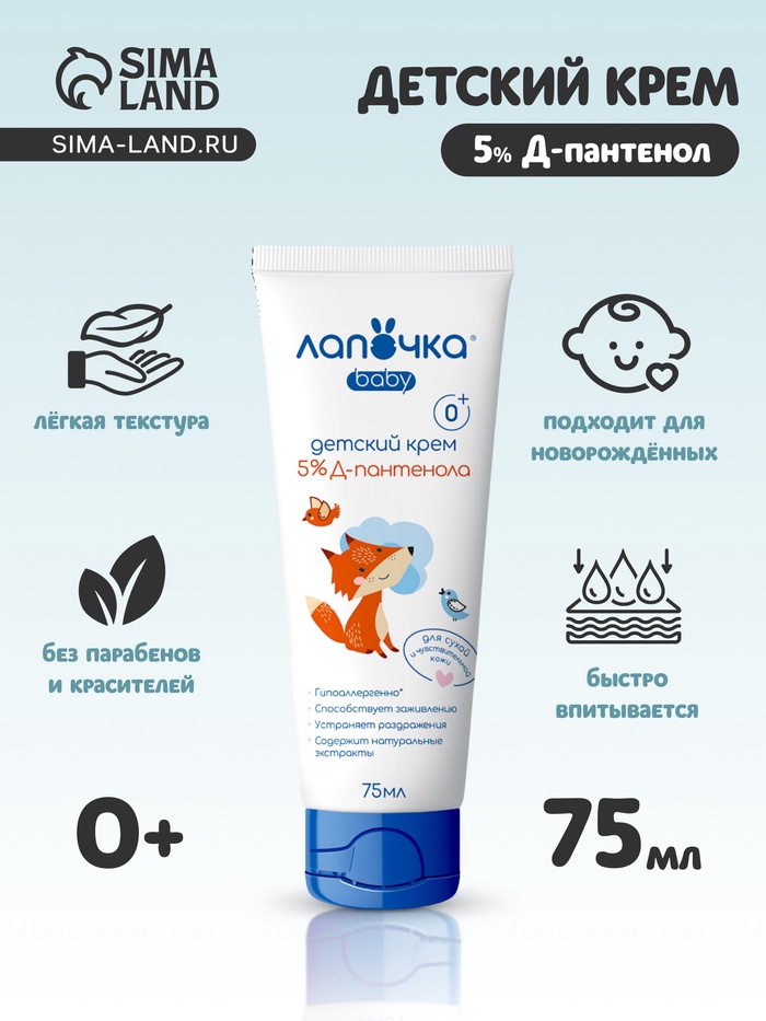 Ежедневный уход за кожей малыша не обойдется без специального крема, предназначенного именно для детской кожи. Детский крем с Д-Пантенолом серии «Лапочка» предназначен для ухода за раздраженной кожей, при наличии опрелостей, покраснений и повреждений кожи различного происхождения (аллергические реакции, обморожения, ожоги, дерматиты).