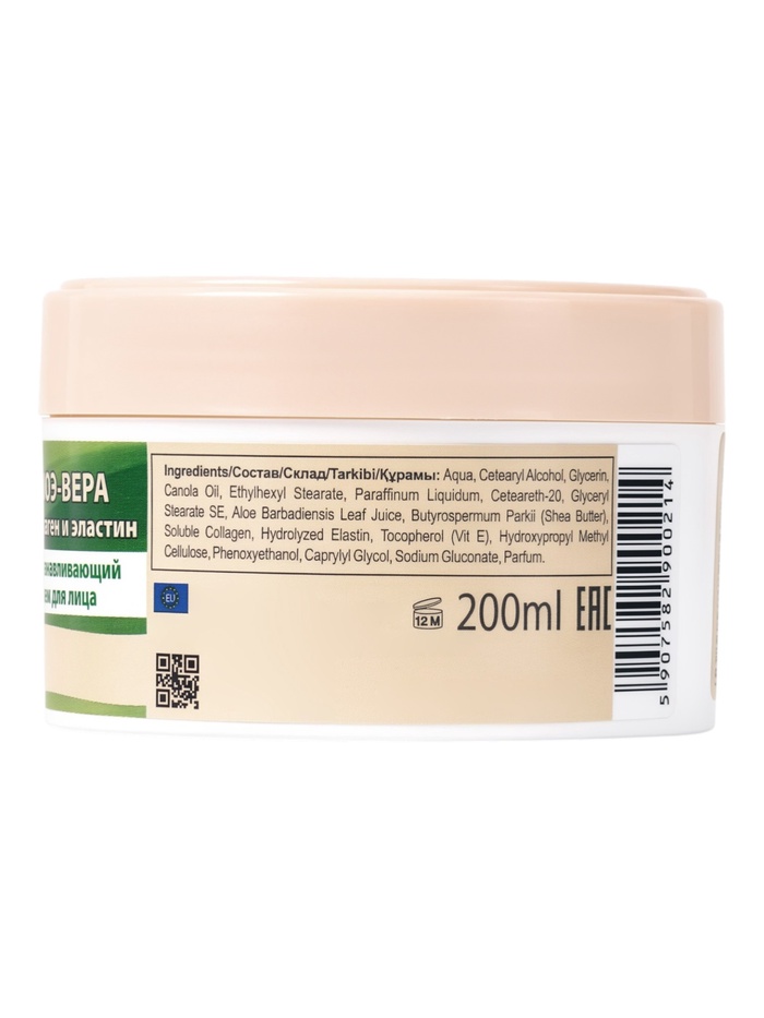 Алоэ вера, Коллаген, Эластин, Витамин Е, Масло ши, Рапсовое масло, Глицерин.