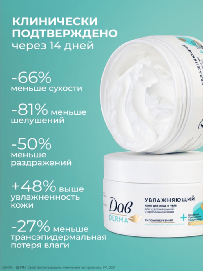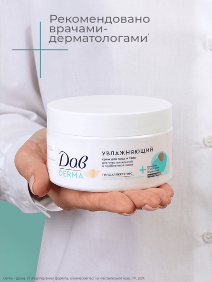 Увлажняющий крем для тела и лица Дав Derma — это универсальное средство для ухода за сухой, чувствительной и проблемной кожей.