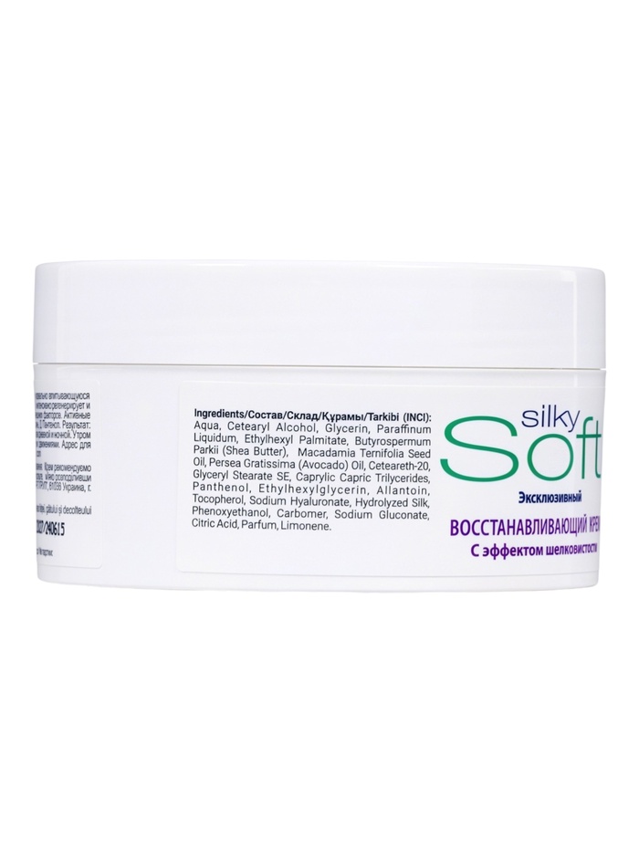 Масло ши (карите), Масло жожоба, Масло из зародышей риса, Масло макадамии, Протеины шёлка, Витамин E, Аллантоин, D-пантенол.