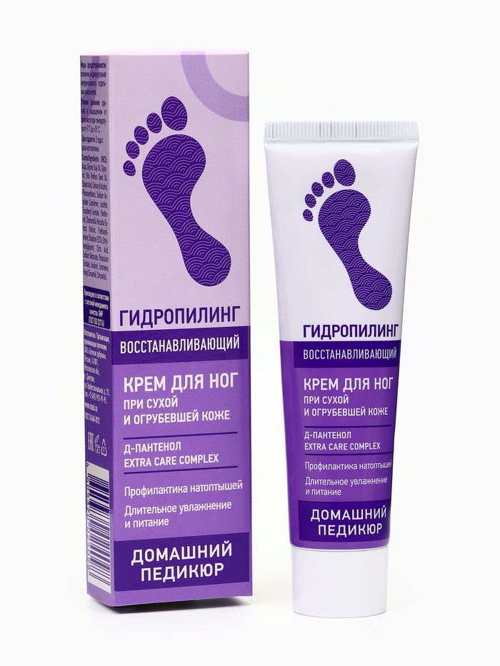 Крем для ног «Гидропилинг» восстанавливающий разработан для ежедневного ухода за сухой огрубевшей кожей стоп.