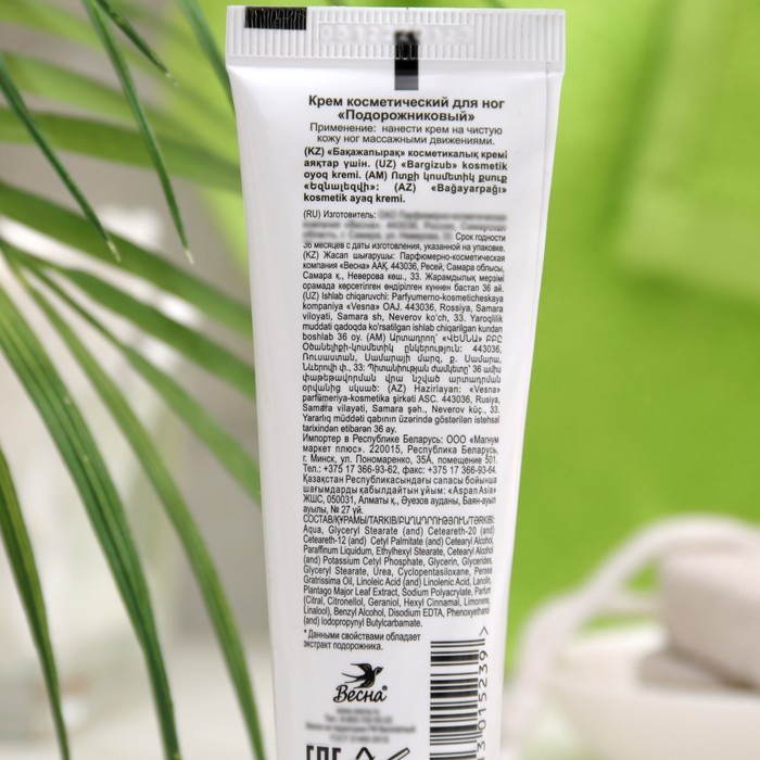 Крем предназначен для эффективного ухода за кожей ног и ступней. Он увлажняет, питает и смягчает загрубевшую кожу, оказывает противовоспалительное и бактерицидное действие. В состав крема входят натуральный экстракт подорожника, глицерин, ланолин и природный белок кератин. Активные компоненты интенсивно ухаживают за кожей, стимулируют регенерацию клеток, способствуют заживлению мелких трещинок, устраняют опрелости между пальцами ног.