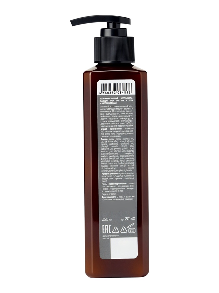 Парфюмированный восстанавливающий крем для рук и тела с маслом авокадо, 250 мл — это эффективный уход для сухой, чувствительной и шелушащейся кожи в период межсезонья. Крем обогащён маслом авокадо и пантенолом, что обеспечивает глубокое увлажнение, смягчение и восстановление естественной эластичности кожи, защищая её от пересыхания в условиях перепадов температур и сухого воздуха.