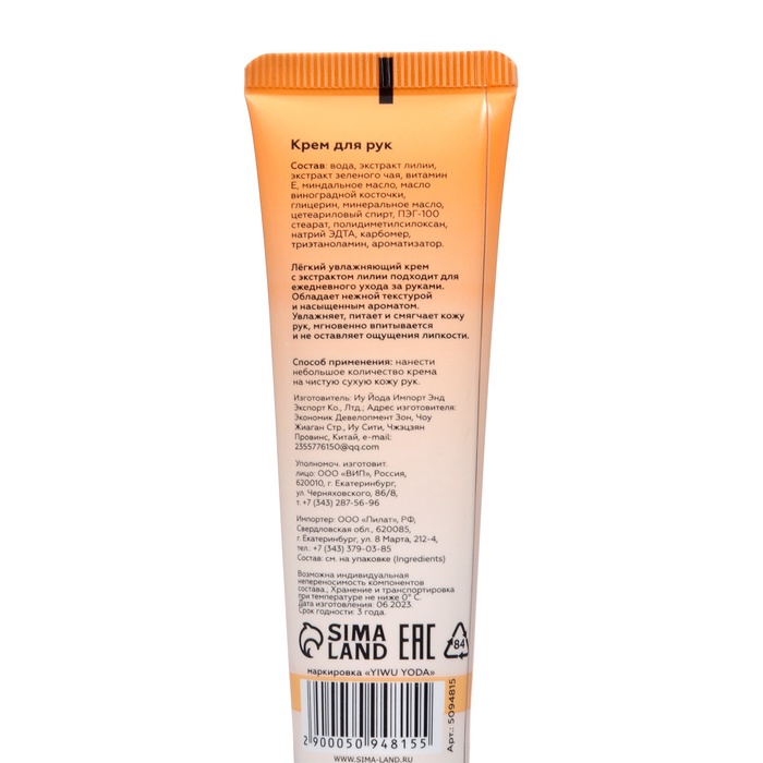Применение: нанести небольшое количество крема на чистую сухую кожу рук.