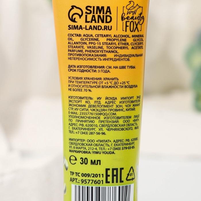Состав: AQUA, CETEARYL ALCOHOL, MINERAL OIL, GLYCERINE, PROPYLENE GLYCOL, ALLANTOIN, PPG-15 STEARYL ETHER, CLYCERY. STEARATE, VASELINE, TOCOPHERYL ACETAT, PARFUME, PHENOXYETHANOL.