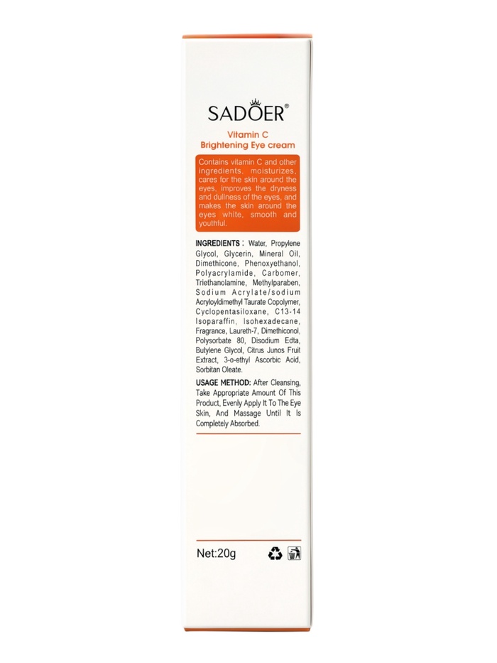 Крем для век SADOER с витамином C — это специально разработанное средство для ухода за тонкой и чувствительной кожей вокруг глаз. Формула крема направлена на интенсивное увлажнение, питание и защиту кожи, поддерживая её естественную упругость и свежесть.