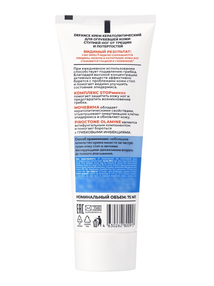 Крем кератолитический для ног DEFANCE MEDIS, против огрубевшей кожи ступней, трещин, потёртостей и г
