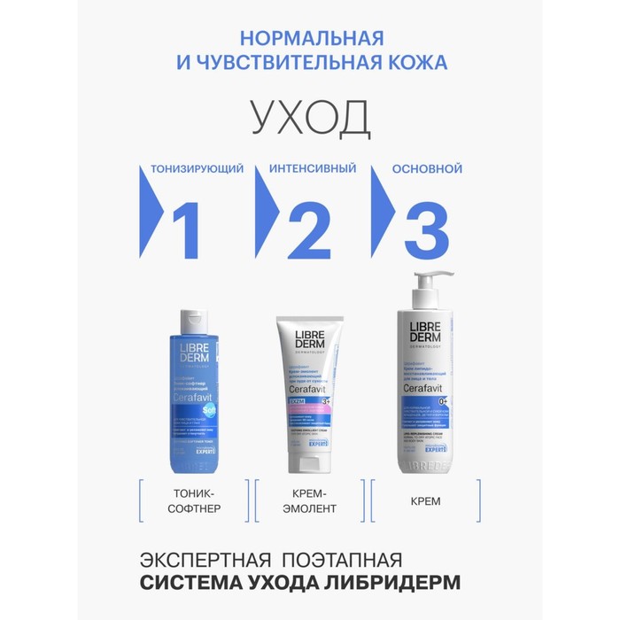 Крем липидовосстанавливающий ЦЕРАФАВИТ/CERAFAVIT нормализует функции сухой, чувствительной и атопической кожи взрослых и детей с первых дней жизни 0+. Уникальная формула из чистого Витамина F, церамидов и пребиотика способствует быстрому восстановлению гидролипидного барьера кожи и синтезу собственных церамидов. Эффективен при раздражениях, шелушении, покраснении и зуде. Быстро снимает ощущение сухости и стянутости, повышает иммунитет кожи. Удерживает влагу в коже и увеличивает её эластичность. Нежный крем быстро впитывается, питает и увлажняет кожу. Не содержит парабенов и красителей. СПОСОБ ПРИМЕНЕНИЯ: наносить на чистую сухую кожу после душа.