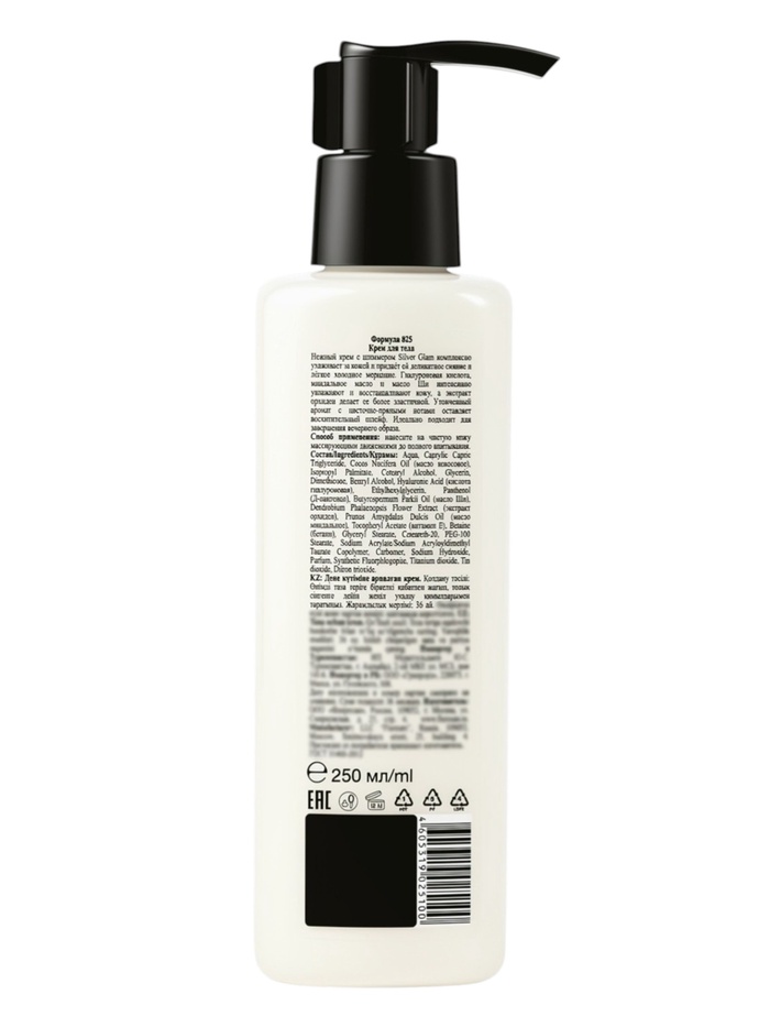 Этот крем с шиммером комплексно ухаживает за кожей, придаёт ей деликатное сияние и лёгкое холодное мерцание, создавая эффект утончённого блеска. Формула обогащена гиалуроновой кислотой, миндальным маслом и маслом ши, которые интенсивно увлажняют, питают и восстанавливают кожу, делая её мягкой и эластичной. Экстракт орхидеи усиливает упругость и улучшает тонус кожи. Утончённый аромат с цветочно-пряными нотами оставляет лёгкий шлейф, делая средство идеальным для завершения вечернего образа.