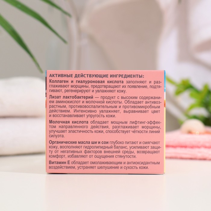 Коллаген и гиалуроновая кислоты заполняют и разглаживают морщины, предотвращают их появление, подтягивают, регенерируют и увлажняют кожу.