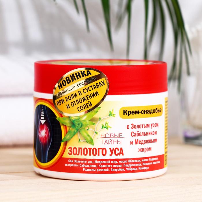 - Состав крем-снадобья на основе сока Золотого уса усилен экстрактом сабельника и медвежьим жиром. Данный комплекс является оптимальным для восстановления и поддержания функционального состояния опорно-двигательного аппарата, норма- лизует внутриклеточный кальциевый обмен.