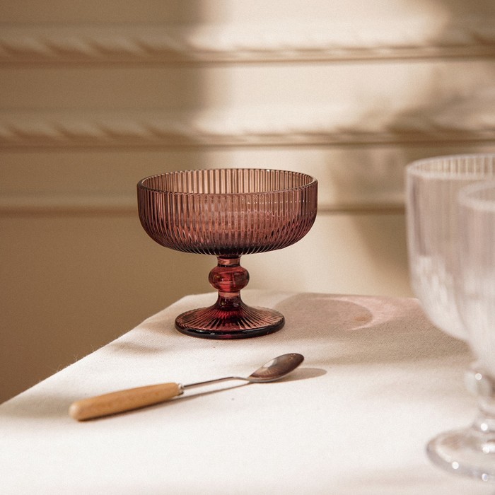 - Изысканный дизайн: нежный розовый цвет и рельефная текстура делают креманку стильным элементом сервировки стола;