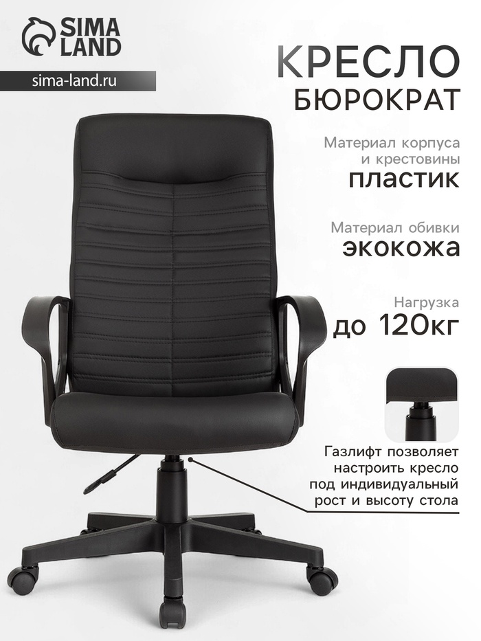 Обивка из экокожи устойчива к износу и проста в уходе. Каркас, основание и колеса изготовлены из прочного пластика.